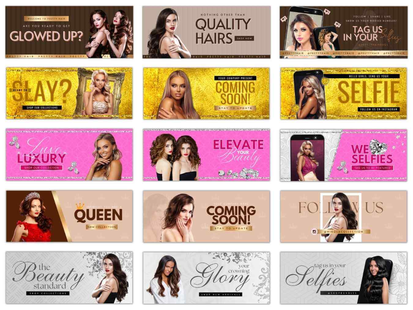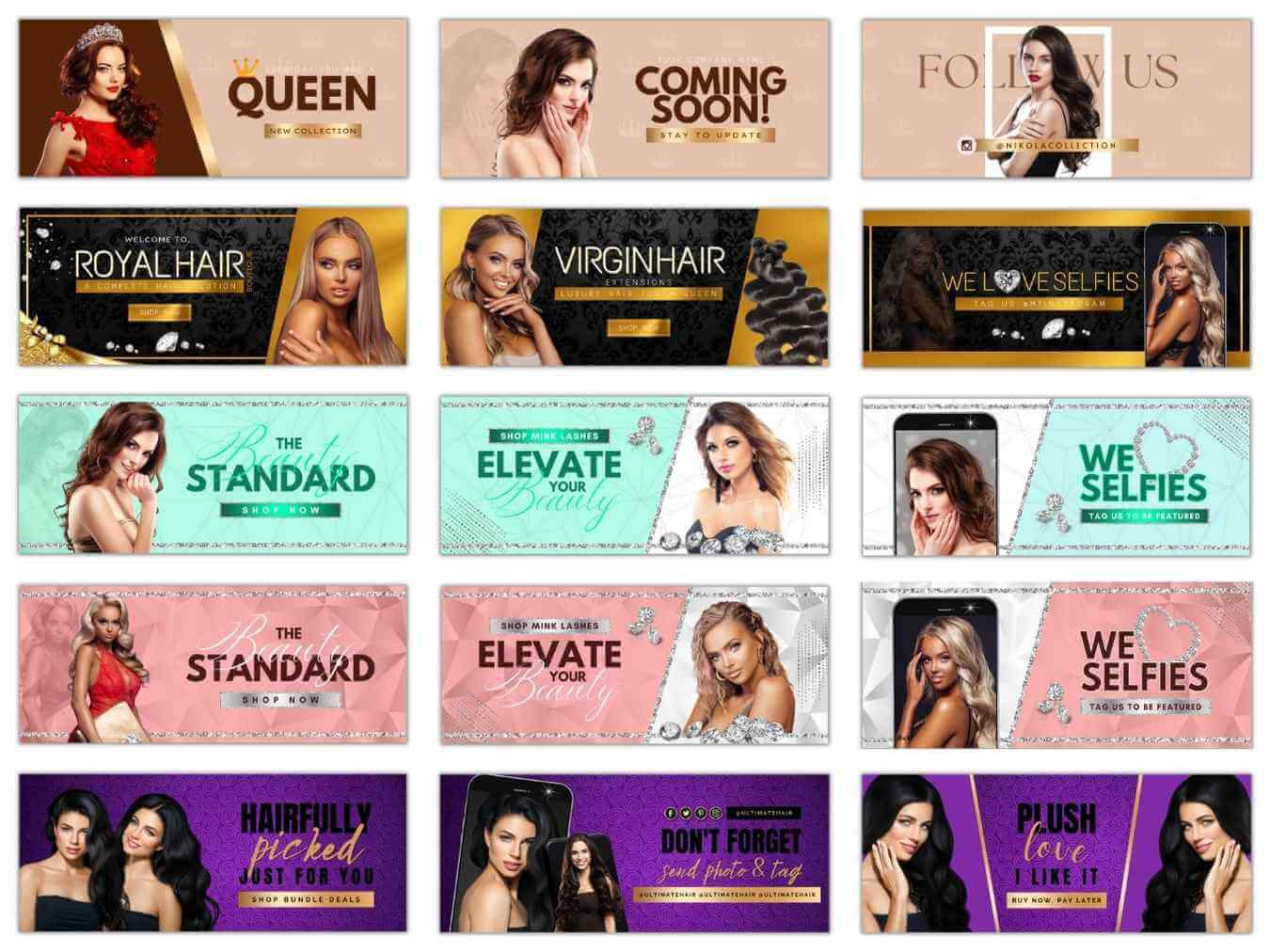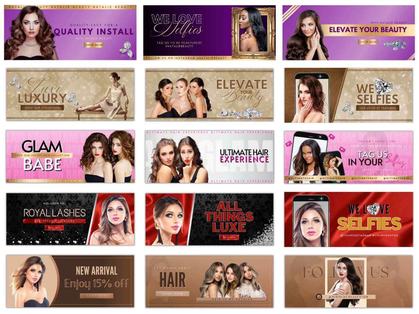 Build a powerful and professional online presence with this 130+ Website Banner Templates Bundle, specially designed for beauty brands, hair businesses, lash artists, salons, and cosmetic entrepreneurs. This all-in-one collection includes high-quality, modern templates that help you create stunning websites and marketing visuals with ease.