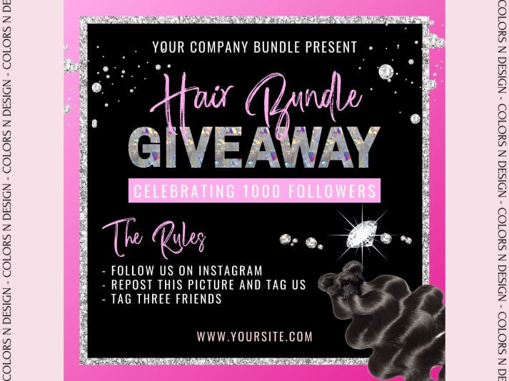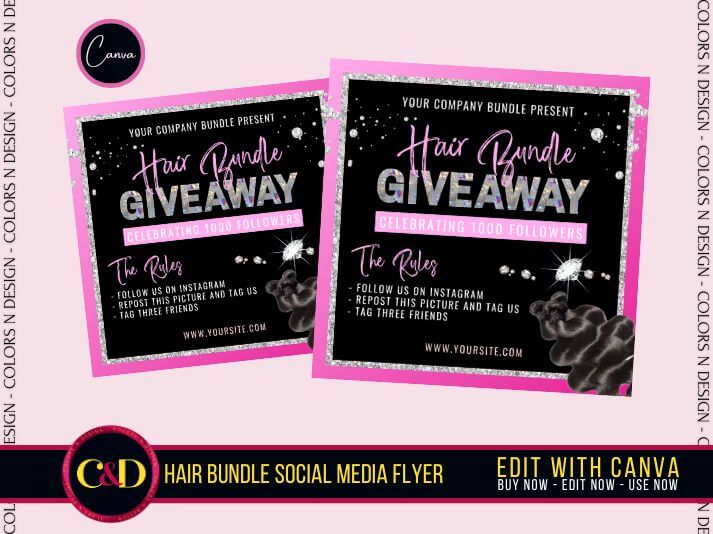 Hair Bundle Giveaway Flyer Template – Instagram Giveaway Post (Canva Editable)