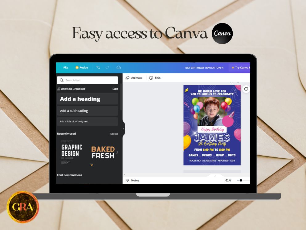 The beautifully designed, instant editable, downloadable, and printable kids’ birthday invitation card, where you can edit yourself and change your image immediately.
